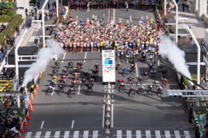 女子でもフィニッシュ前のデッドヒートが見られました。日本人1位で全体6位の土田和歌子選手(ウィルレイズ)と同2位で同7位となった仲嶺翼選手(テス・エンジニアリング)、さらに5位の選手も含め、タイムは1時間41分20秒。順位の違いはわずかな差でした。土田選手は、「スタートは出遅れましたが、しっかり前を追って走れました。少し風が強かったが、シーズン初戦としてはいいレースができました」。昨年11月のレース中に肩を痛めましたが、リハビリに努めたおかげで、「復帰できるという証明になりました」と安堵の表情を見せました。また、仲嶺選手は、「集団で走れたので、思っていたよりいい感じで走れました。この時期としてはいいタイムで走れたので、シーズンの入りとしては良かったです」。昨年から取り組む上り坂の強化についても成果が感じられたそうで、「ここからあげていきたい」と前を見据えました。